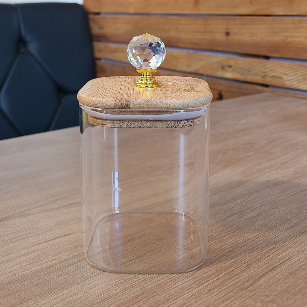 ✨ Kit de Potes Decorativos com Tampa de Bambu e Puxador em Cristal ✨ Transforme sua cozinha ou cantinho do café com esse conjunto elegante e funcional! Os potes são produzidos em acrílico transparente de alta qualidade, com tampa de bambu natural e puxador em cristal lapidado com detalhe dourado, que trazem um toque sofisticado e moderno à decoração. 💎 Destaques do produto: Design clean e luxuoso, ideal para compor bancadas e prateleiras; Tampa com vedação em silicone, que mantém os alimentos frescos por mais tempo; Puxador de cristal decorativo que adiciona charme e requinte; Perfeito para armazenar biscoitos, café, açúcar, grãos, cápsulas e muito mais; Fácil de limpar e resistente. 📏 Tamanhos aproximados: Pote grande 1000ML - Altura: 20 cm e Laterais: 8 cm Pote médio 700ML – Altura: 15 cm e Laterais: 8 cm Pote pequeno 450ML - Altura: 10 cm e Laterais: 8 cm 🌿 Ideal para quem busca praticidade sem abrir mão da beleza e elegância na organização!