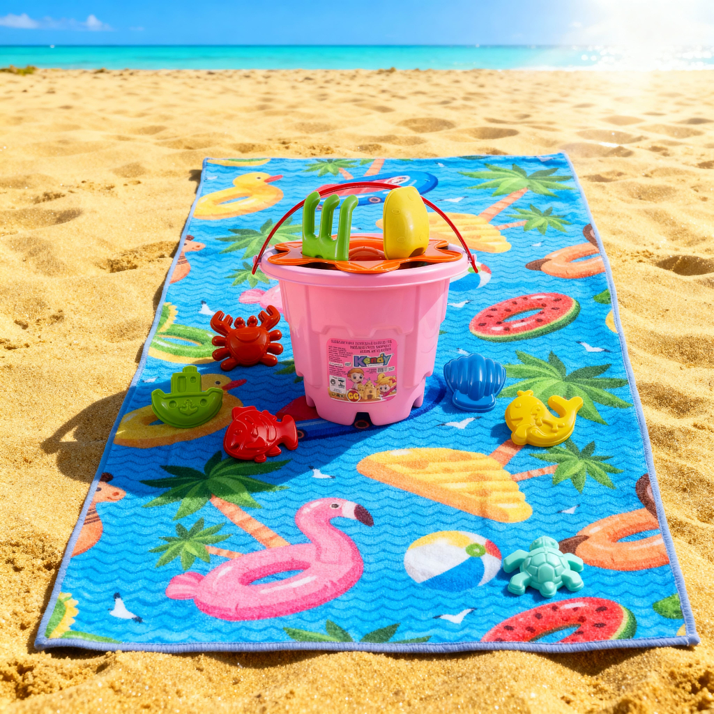 Kit Praia Balde + Toalha Tropical | Balde Império GG + 6 Forminhas | Toalha Estampa HD Modelo Importado | QUEEN SHOP