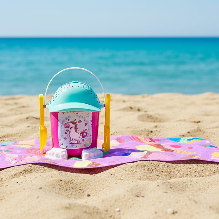Kit Praia Menina Toalha + Balde | Toalha Cupcake Estampa HD Modelo Importado | Balde Kendy Modelo Juju | QUEEN SHOP