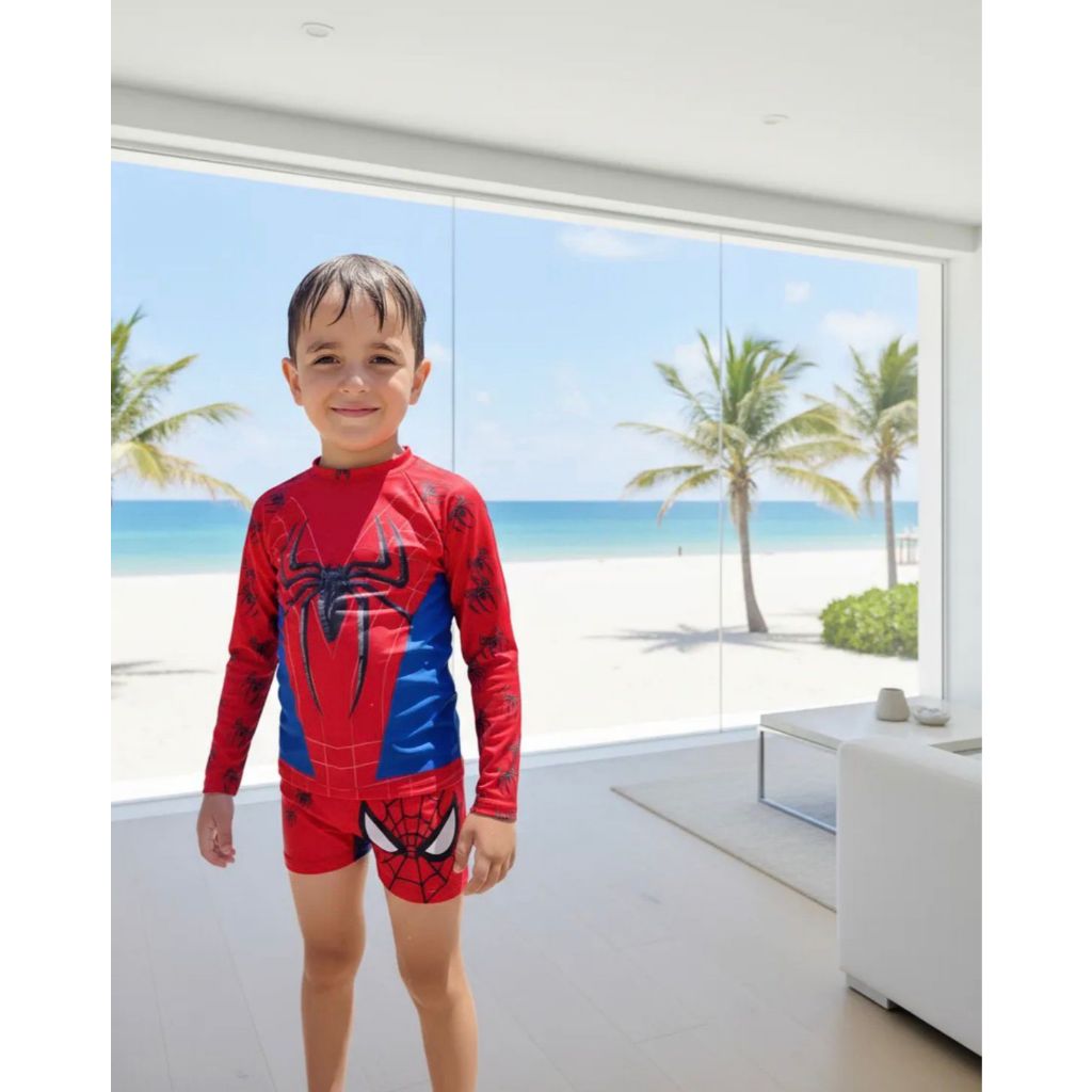 Moda Praia Infantil Roupa De Banho Infantil Personagens Variados Com Proteção UV - Homem Aranha ________________________________________________________ * Acompanha Camiseta + Sunga * Tamanhos: P M G GG P - recomendamos para crianças de 1 a 2 anos M - recomendamos para crianças de 3 a 4 anos G - recomendamos para crianças de 5 a 6 anos GG - recomendamos para crianças de 7 a 8 anos *** Quaisquer dúvidas entrar em contato pelo o campo de perguntas*** MEDIDAS • Tamanho (3 a 4 anos) Sunga = Altura 15cm - Largura 26 cm Camisa = Largura 28 cm, comprimento 40 cm, manga 46 cm • Tamanho (5 a 6 anos) Sunga = Altura 18 cm, Largura 28 cm Camisa = Largura 30 cm, comprimento 40 cm, manga 49cm • Tamanho (7 a 8 anos) Sunga = Altura 20 cm - Largura 28 cm Camisa = Largura 33cm, comprimento 44 cm, manga 49 cm • Tamanho (9 a 10 anos) Sunga: = Altura 18 cm - Largura 30 cm Camisa = Largura 34 cm, comprimento 47 cm, manga 53cm. Garantia do vendedor: 30 dias