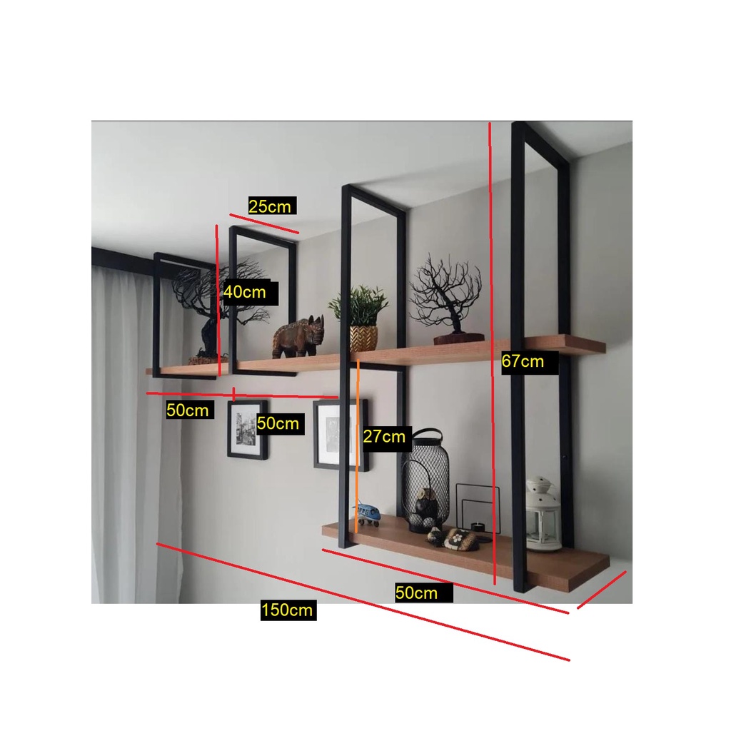 Prateleira Flutuante de Ferro e Madeira Estilo Industrial. Com uma aparência industrial é a maneira mais elegante de organizar sua cozinha, sala, escritório e banheiro. Projetado em estilo industrial, possui furações para instalação no teto (flutuante) ou na parede (prateleira), tendo suas prateleiras feitas em MDF, garante maior resistência e durabilidade ao produto. Sua estrutura é em metal acabado com pintura preta fosco, dando maior durabilidade a peça. Com a prateleira em MDF você tem o espaço ideal para organizar sua casa, comércio ou escritório *temos em várias medidas, com: 150cm de comprimento metal: 16x16 não acompanha parafusos de parede e bucha.