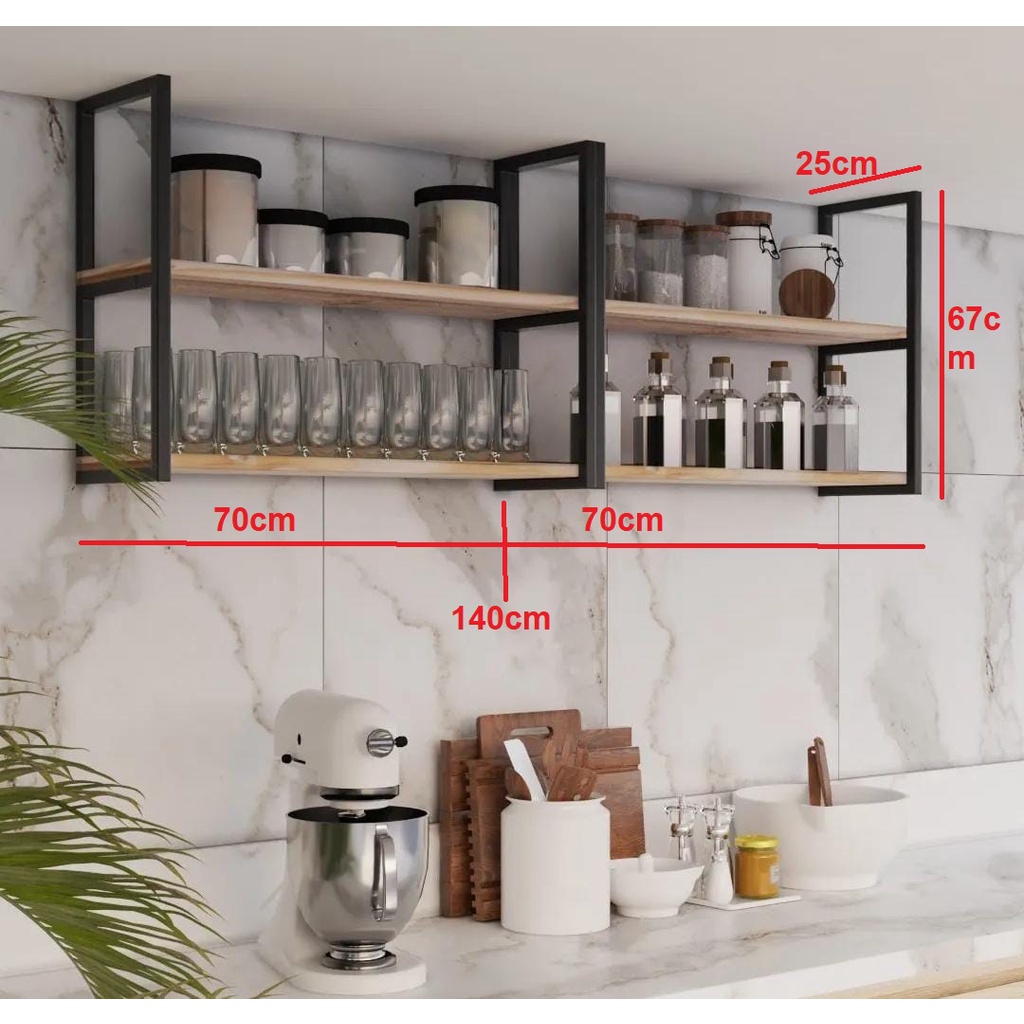 Prateleira Flutuante de Ferro e Madeira Estilo Industrial. Com uma aparência industrial é a maneira mais elegante de organizar sua cozinha, sala, escritório e banheiro. Projetado em estilo industrial, possui furações para instalação no teto (flutuante) ou na parede (prateleira), tendo suas prateleiras feitas em MDF, garante maior resistência e durabilidade ao produto. Sua estrutura é em metal acabado com pintura preta fosco, dando maior durabilidade a peça. Com a prateleira em MDF você tem o espaço ideal para organizar sua casa, comércio ou escritório *temos em várias medidas, com: 80cm de comprimento 100cm de comprimento 110cm de comprimento 120cm de comprimento 130cm de comprimento 140cm de comprimento Cada kit vai com 4 Prateleiras e 3 suporte 67x25 material/; metalon 16x16 pintura preta fosca prateleiras em mdf juntamente com material para instalação