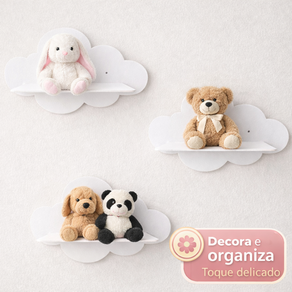 Kit Prateleira Para Quarto Nicho Nuvem 3 Peças