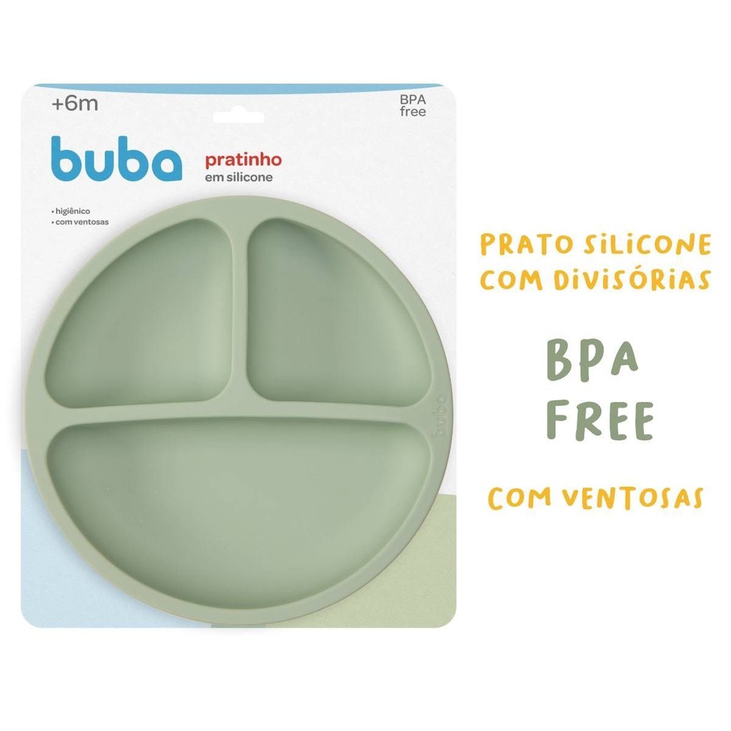 Prato Infantil de Silicone com Ventosa Buba com Divisórias + Colher Silicone Cabo Bambu Buba, BPA Free Deixe a introdução alimentar do seu bebê muito mais prática, segura e divertida! O Pratinho em Silicone Buba foi desenvolvido especialmente para facilitar as refeições, promovendo autonomia e organização dos alimentos. DESTAQUES DO PRATINHO: Material: ponta em silicone e cabo em bambu natural Textura macia e segura para gengivas sensíveis PRODUZIDO EM SILICONE DE ALTA QUALIDADE, LIVRE DE BPA E FTALATOS POSSUI VENTOSA NA BASE, FIXA NA MESA E EVITA DERRAMAMENTOS 3 DIVISÓRIAS PARA SEPARAR OS ALIMENTOS, ESTIMULANDO A MONTAGEM DE PRATOS NUTRITIVOS SUPERFÍCIE FÁCIL DE LIMPAR, HIGIÊNICA E RESISTENTE INDICADO PARA BEBÊS A PARTIR DE 6 MESES MATERIAL FLEXÍVEL, NÃO QUEBRA E PODE IR À LAVA-LOUÇAS, MICRO-ONDAS E FREEZER DESIGN MODERNO E FUNCIONAL, IDEAL PARA A ROTINA DOS PEQUENOS BABADOR: Fechamento com botões ajustáveis Bolso frontal pega-migalhas integrado Superfície macia e fácil de limpar COLHER BAMBU: Textura macia e segura para gengivas sensíveis Design ergonômico que facilita a pega Estimula o autoalimentarismo e a coordenação motora DESTAQUES COPINHO: COPO DE TREINAMENTO INFANTIL COM ALÇA DUPLA, FÁCIL DE SEGURAR BICO EM SILICONE MACIO, IDEAL PARA BEBÊS A PARTIR DE 12 MESES CAPACIDADE DE 160ML, PERFEITO PARA ÁGUA, SUCOS OU LEITE ITENS INCLUSOS: 01 Pratinho com divisorias Silicone com Ventosa Buba 01 Colher Silicone Buba com cabo de Bambu 01 Copinho Buba bico silicone 01 Babador Buba com pega migalha.