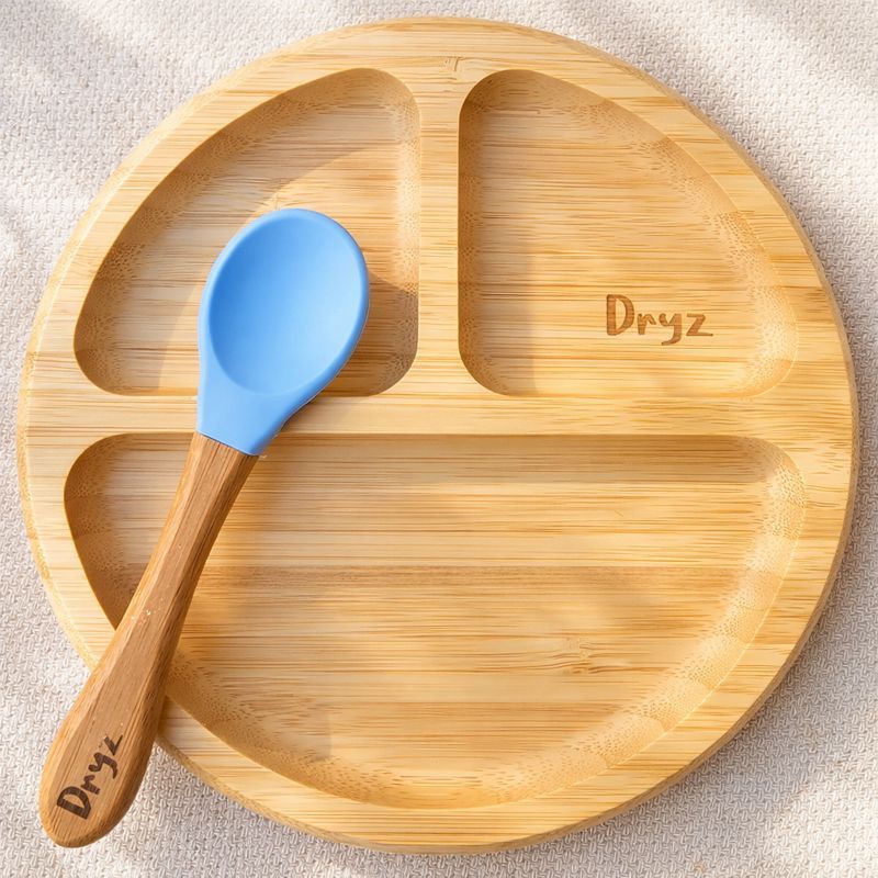 Kit Prato com Colher Infantil Dryz Bambu com Ventosa – Antiderrapante, Sem BPA, Introdução Alimentar