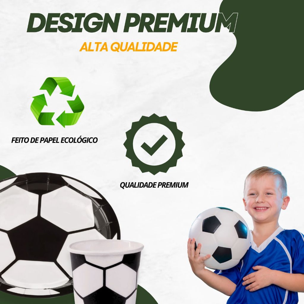Kit Prato e Copo de Papel Futebol Bola Premium Ecológico Decoração Aniversário
