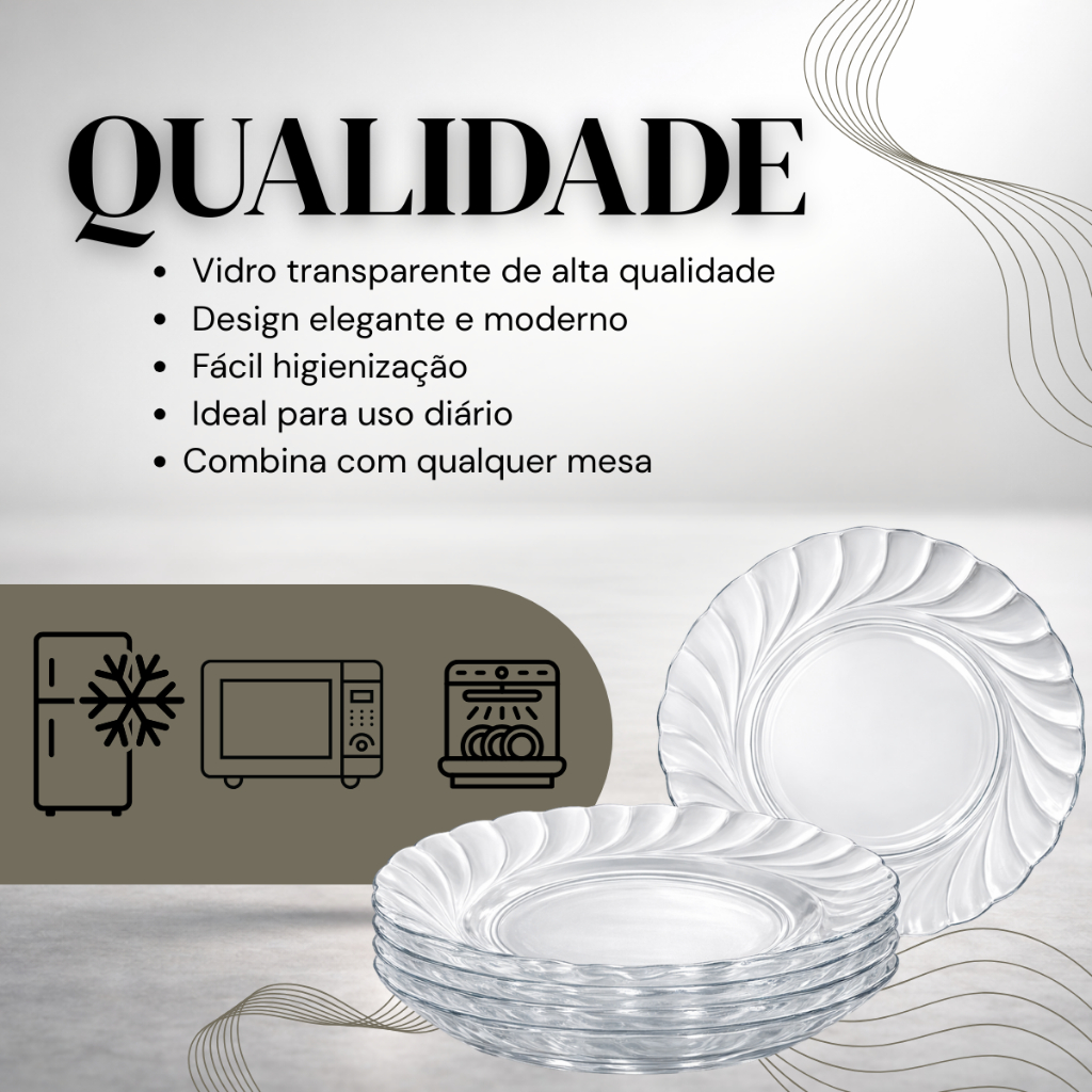 Kit Pratos Fundo Liso de Vidro - Transparente e Resistente