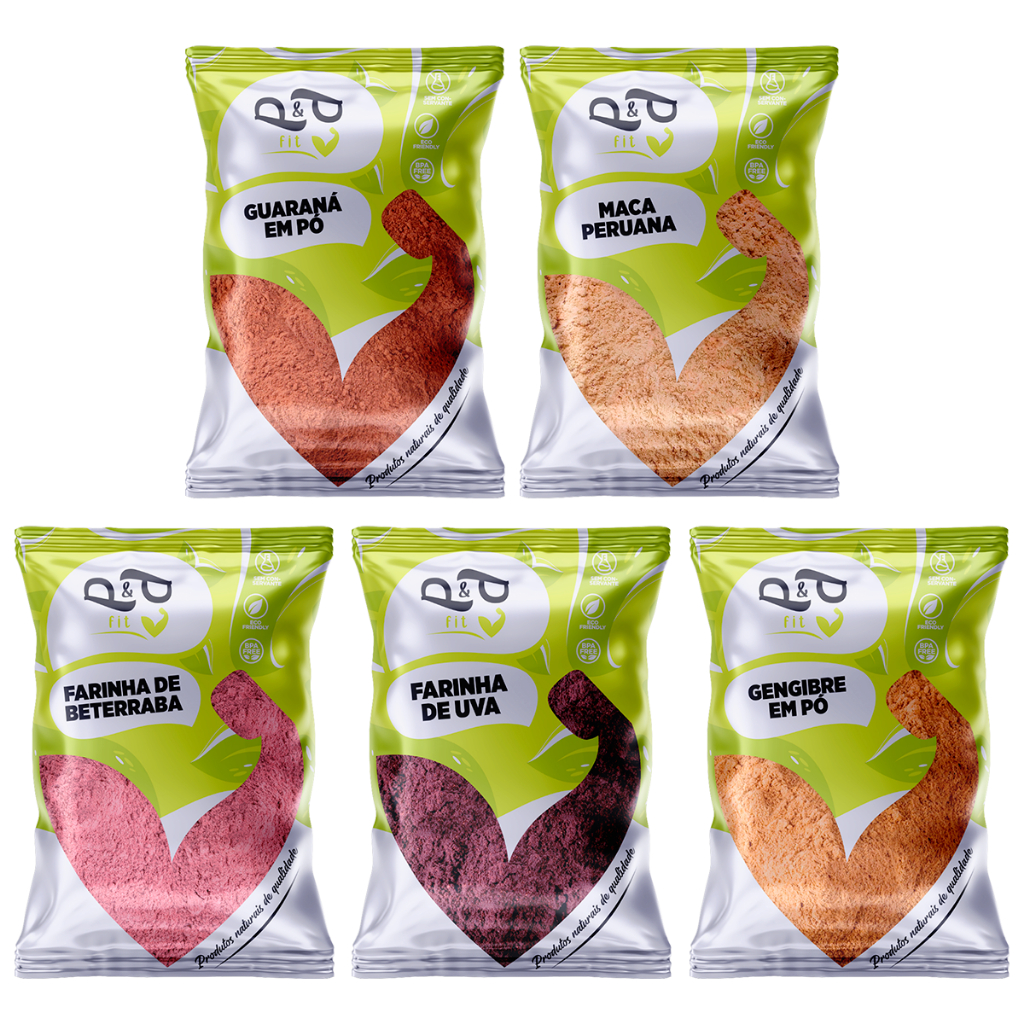 Kit Pré Treino Natural - Guaraná Gengibre em Pó Farinha de Beterra Uva Maca