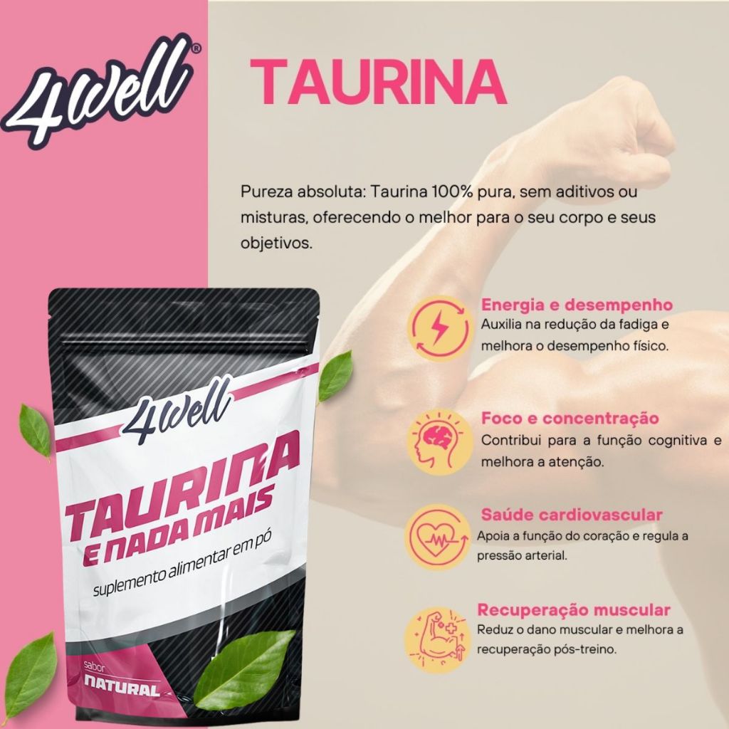 Kit Pré-Treino Sem Cafeína Beta Alanina 300g + L - Arginina 4well 500g + Taurina 500g