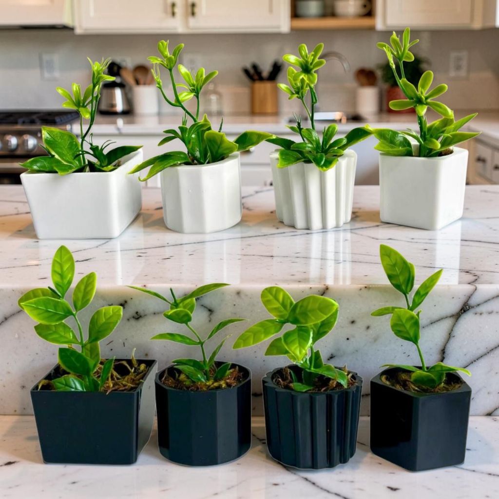 Kit Premium - 8 Vasinhos Decorativos com Plantas Artificiais Moderna
