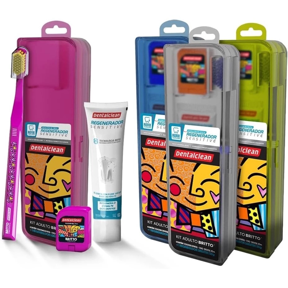 Kit Premium Dental Romero Britto Adulto com Escova de Dente + Gel Dental + Fio Dental da Dentalclean