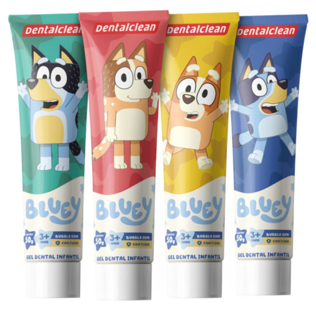 KIT PREMIUM INFANTIL 3EM1 BLUEY - SORTIDO - DENTALCLEAN O Kit Premium Dentalclean Bluey foi criado especialmente para presentear as crianças que são fãs da personagem Bluey e para auxiliar as famílias a transformar a higiene bucal em um momento divertido e educativo. O foco deste produto é oferecer praticidade e qualidade, em um só pacote, para que pais e cuidadores possam garantir o cuidado completo com os dentes dos pequenos. Ao escolher o Kit Premium Dentalclean Bluey, você investe em um produto oficial com certificação de qualidade, pensado para crianças a partir de 3 anos e inspirado no universo lúdico que elas adoram.O que inclui o kitEste conjunto exclusivo é composto por três itens essenciais para a rotina diária de higiene bucal das crianças:Escova Dental Bluey Premium: Com cabeça pequena e cerdas macias, desenvolvida especialmente para bocas pequenas. O cabo ergonômico facilita o manuseio pelas crianças, estimulando a independência na escovação.Fio Dental Bluey Premium 20 m: O fio dental vem em um estojo compacto e resistente que cabe perfeitamente nas mãos das crianças e pode ser transportado em mochilas e nécessaire. O material ultradeslizante permite a remoção de resíduos entre os dentes de maneira suave e eficaz.Gel Dental Bluey Premium 50 g: Um gel com sabor de bubble gum, formulado com 1.100 ppm de flúr, ideal para proteger contra cáries enquanto mantém o hálito fresco. A textura suave e a embalagem colorida tornam a escovação um momento agradável.Benefícios para a saúde bucal infantil A saúde bucal na infância é fundamental para o desenvolvimento saudável. O Kit Premium Dentalclean Bluey reúne produtos que atendem às orientações de odontopediatras sobre limpeza completa, prevenção de cáries e estímulo à escovação regular. O fio dental complementa a escovação removendo os resíduos entre os dentes, enquanto o gel com flúr fortalece o esmalte. A combinação desses produtos ajuda a estabelecer hábitos saudáveis desde cedo.Além disso, o design atraente com a personagem Bluey torna a rotina mais estimulante. Estudos mostram que crianças engajadas em atividades lúdicas apresentam maior aderência aos cuidados com a higiene. Ao associar o cuidado bucal a um personagem querido, você contribui para que a escovação seja vista com prazer.