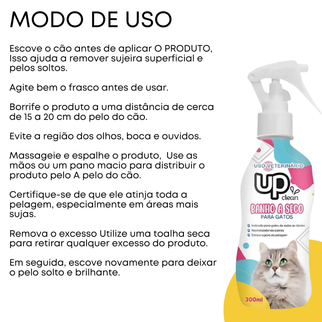 Kit Premium Up Clean Banho a Seco 300ml Para Gatos Com Escova Vaporizada Exclusiva Para Seu Pet