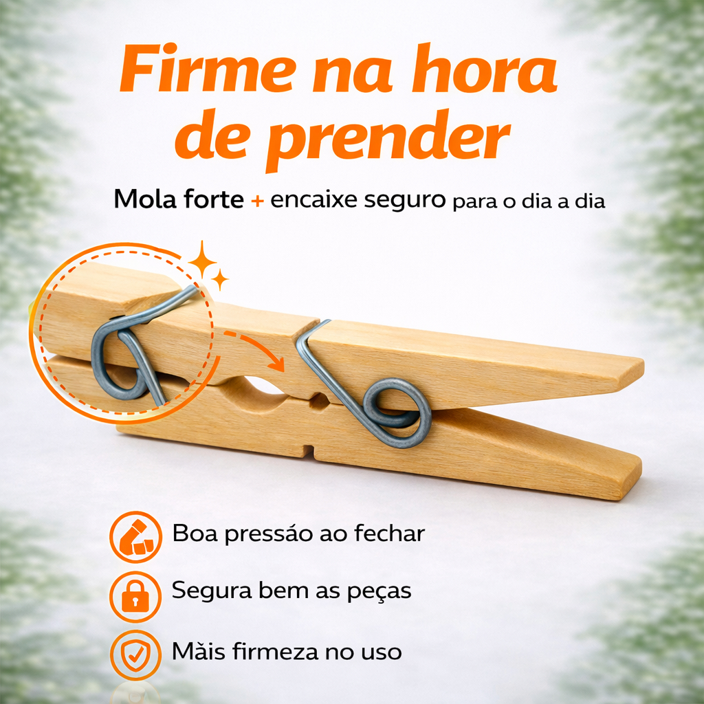 Prendedor de Roupa de Madeira – Resistente, Clássico e Eficiente Mantenha suas roupas firmemente no varal com o nosso Prendedor de Roupa de Madeira, um item essencial para o dia a dia. Fabricado em madeira natural de alta qualidade e equipado com mola metálica resistente, ele une durabilidade e funcionalidade com um toque rústico e elegante. Características: Madeira resistente e ecologicamente correta Mola de aço galvanizado com ótima pressão Ideal para roupas leves e pesadas Pode ser usado também para artesanato, decoração ou organização Não mancha as roupas e não escorrega facilmente Seja para uso doméstico ou profissional (lavanderias, ateliês, lojas), o prendedor de madeira é uma solução prática, bonita e sustentável. Disponível em kits econômicos com múltiplas unidades. Garanta já os seus e traga qualidade e estilo até para as tarefas do dia a dia!
