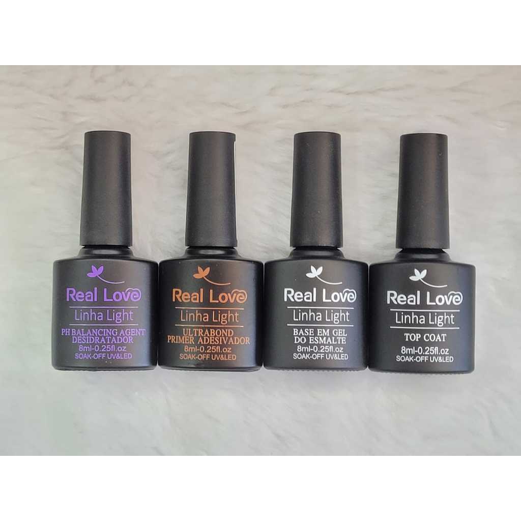 Kit Preparadores Real Love - 8ml Kit 05 - PH Balancing Desidratador + Primer Non Acido + Ultrabond + Base em Gel + Top Coat Kit 06 - Primer Non Acido + Ultrabond + Base em Gel + Top Coat Kit 07 - PH Balancing Desidrat + Ultrabond + Base em Gel + Top Coat Kit 08 - Ultrabond