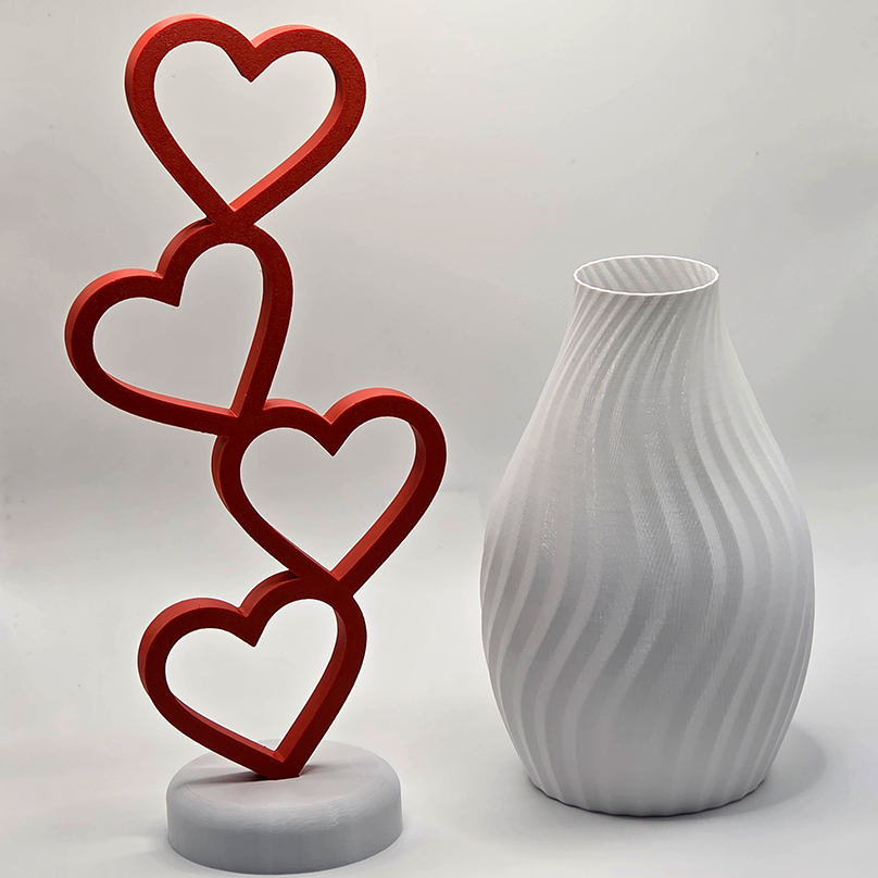 🎁 Presente Criativo e Decorativo – Kit Exclusivo 3D - PLÁSTICO Transforme qualquer ambiente com um toque de amor e modernidade! Um presente especial, feito com carinho para surpreender quem você ama — ou para decorar com charme seu próprio cantinho 💖 ✨ O kit contém: • 1 Totem de Corações entrelaçados (22 cm de altura) • 1 Vaso espiral branco moderno (15 cm de altura) 🌟 Destaques: • Design exclusivo impresso em 3D • Combinação elegante e cheia de significado • Ideal para estantes, quartos e ambientes aconchegantes • Presente perfeito para surpreender com estilo 💥 Desconto automático de 5% aplicado ao iniciar a compra! 🎨 Disponível em duas combinações: ❤️ Corações vermelhos com base branca 🤍 Corações brancos com base vermelha