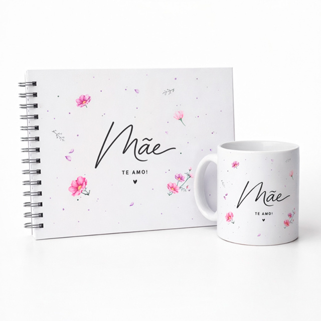 Kit Presente Dia das Mães Álbum de Fotos + Caneca Minimalista Álbum de Memórias para Mãe 20x22 cm