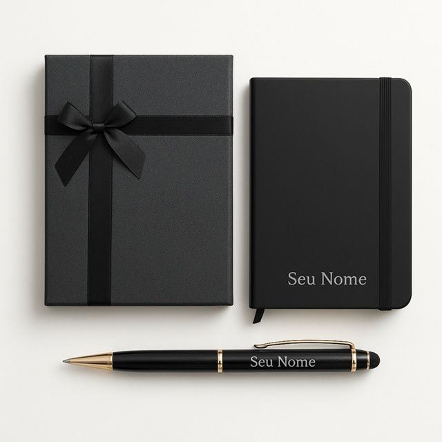 Kit Presente Personalizado – Bloco de Notas + Caneta + Caixa Elegante