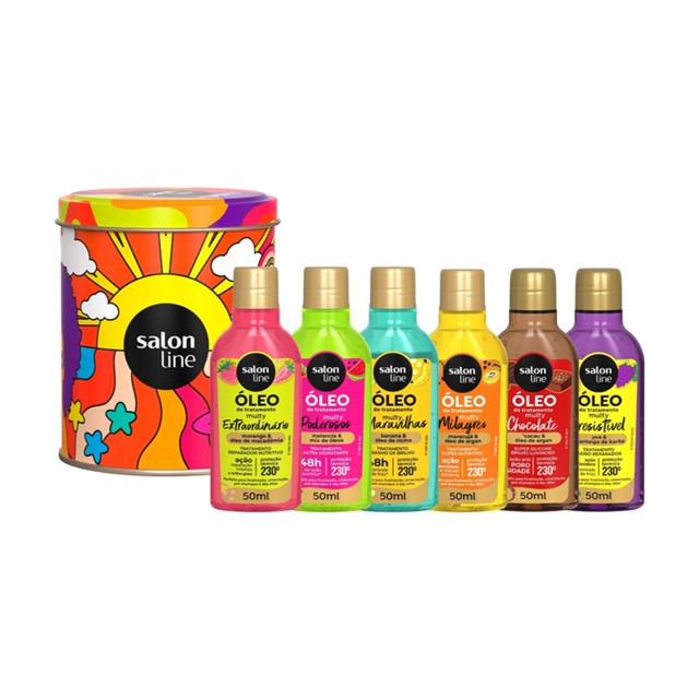 O kit contém 6 Óleos especiais da linha de tratamento Cachos dos Sonhos Multy, a seleção completa para hidratar, reparar, proteger e perfumar os fios, com ação antifrizz, brilho intenso e nutrição profunda. Acompanha lata personalizada, perfeita para presentear cuidado, versatilidade e performance diária. INDICAÇÕES Para quais tipos de cabelo? Para todos os tipos de cabelo. Qual a indicação? desnutrido, desidratado, sem definição, com frizz, ressecado, fragilizado e sem volume. Pode usar a partir de quantos anos? A partir de 12 anos. ATIVOS Quais os principais ativos? Óleo de Tratamento Uva Cachos dos Sonhos Multy Irresistível O óleo de semente de uva potencializa a hidratação dos fios, enquanto a manteiga de karité revitaliza, proporcionando maciez e nutrição. Óleo de Tratamento Melancia Cachos dos Sonhos Multy Poderosos É especialmente enriquecido com óleo de melancia, óleo de argan, D-pantenol e mix de aminoácidos, ativos hidratantes e nutritivos. Óleo de Tratamento Maracujá Cachos dos Sonhos Multy Milagres É especialmente enriquecido com óleo de maracujá, óleo de argan, D-pantenol e mix de aminoácidos, ativos hidratantes e nutritivos. Óleo de Tratamento Banana Cachos dos Sonhos Multy Maravilhas É especialmente enriquecido com óleo de banana, óleo de rícino, colágeno vegetal e mix de vitaminas, ativos hidratantes e nutritivos. Óleo de Tratamento Morango Cachos dos Sonhos Multy Extraordinário É especialmente enriquecido com extrato de morango, óleo de macadâmia, queratina vegetal e ceramidas vegetais, ativos hidratantes e nutritivos. Óleo de Tratamento Cachos dos Sonhos Multy Chocolate É enriquecido com manteiga de cacau que nutre profundamente, suaviza os fios e combate o ressecamento. O óleo de argan preserva a hidratação natural, promovendo fios mais nutridos e saudáveis. <>MODO DE USO$& Qual a melhor forma de usar? Óleo de Tratamento Uva Cachos dos Sonhos Multy Irresistível, Óleo de Tratamento Melancia Cachos dos Sonhos Multy Poderosos, Óleo de Tratamento Maracujá Cachos dos Sonhos Multy Milagres, Óleo de Tratamento Banana Cachos dos Sonhos Multy Maravilhas, Óleo de Tratamento Morango Cachos dos Sonhos Multy Extraordinário, e Óleo de Tratamento Cachos dos Sonhos Multy Chocolate Com o cabelo seco ou úmido, aplique algumas gotas do óleo na palma das mãos e espalhe bem do comprimento às pontas. Finalize como preferir. Sem enxágue. Indicado para finalização, umectação, pré-shampoo e day after. CARACTERÍSTICAS É produto vegano? Todos os produtos são veganos. É liberado? Apenas o óleo de tratamento multy extraordinário é liberado.