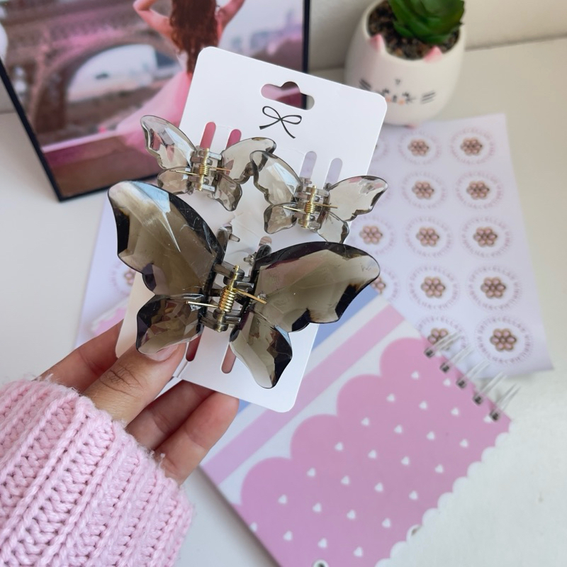 Kit Presilha Borboleta Acrílica 3 Peças (1 Grande + 2 Pequenas) Transparente Feminina