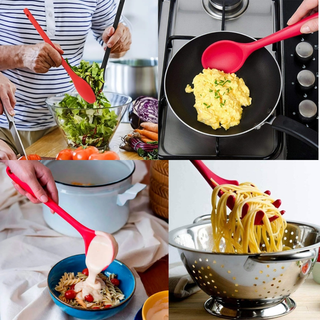 🥄 Kit de Utensílios de Cozinha em Silicone – 5 Peças Essenciais Transforme sua rotina na cozinha com este kit completo de utensílios em silicone, perfeito para quem busca praticidade, resistência e estilo! O conjunto conta com 5 peças indispensáveis para o dia a dia: escumadeira, concha, colher de arroz, espátula vazada e colher para massa – todas produzidas em silicone de alta qualidade, resistente ao calor e que não risca suas panelas. ✨ Características: Material: Silicone resistente e seguro para uso alimentar Cabos ergonômicos, confortáveis e antideslizantes Suporta altas temperaturas sem deformar Fácil de limpar e não retém odores Ideal para panelas antiaderentes 💡 Benefícios: Protege suas panelas e frigideiras Evita o acúmulo de resíduos e manchas Design moderno e colorido, que deixa sua cozinha ainda mais bonita Perfeito para preparar qualquer receita com praticidade e estilo 📦 Contém: 1 Escumadeira 1 Concha 1 Colher para arroz 1 Espátula vazada 1 Colher para massa