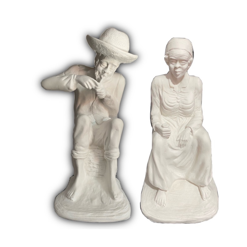 SOBRE O PRODUTO Preto Velho e Preta Velha em Gesso Cru Peça feita em gesso de alta qualidade, e com excelente acabamento, para você decorar como quiser. MEDIDA Altura: Preto Velho 20 cm Preta Velha 19 cm CUIDADOS Não deixar a peça exposta a umidade Produto muito bem embalado para fornecer a melhor qualidade de envio para nossos clientes. Obrigado FB GESSO