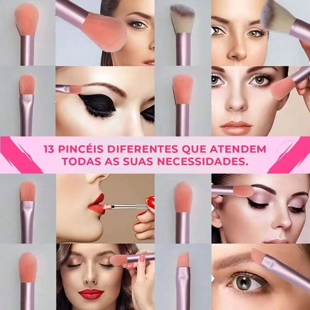 Kit Profissional 13 Pincéis de Maquiagem Pincel Super Macio Luxo com Bolsinha de Veludo Luxuoso