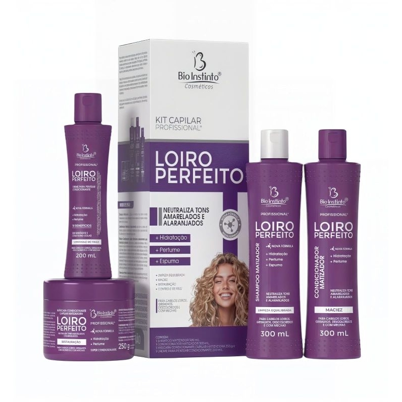Kit Profissional Loiro Perfeito Matizador Bio Instinto Hidratação Maciez & Brilho - 4 itens