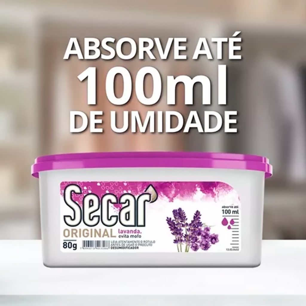 Norton Distribuidora | Somos especialistas em material de escritório e papelaria. Nossa missão está na fidelização dos nossos clientes; Contamos com dezenas de colaborares e um estoque de 1.000 metros quadrados; Todos os nossos produtos possuem nota fiscal de compra e venda; Temos um time destinado 100% ao Shopee; Estamos aqui desde 1.999 e prontos para te atender. Produtos: KIT 3 UNIDADES ANTIMOFO SECAR LAVANDA 80g KIT 6 UNIDADES ANTIMOFO SECAR LAVANDA 80g KIT 12 UNIDADES ANTIMOFO SECAR LAVANDA 80g Descrição: O SECAR é um desumidificador que age eliminando a umidade, evitando os problemas de mofo, fungos e odor em armários, guarda-roupas, gavetas, gabinetes de pias, bibliotecas, videotecas, discotecas, pianos, aparelhos de som, equipamentos fotográficos, etc. Secar age absorvendo a umidade do ambiente, armazenando a água no pote. Características: Tamanho: 80g Fragrância: Lavanda A Lavanda possui um perfume leve, envolvente e memorável que transmite toda a calma, aconchego e conforto. O óleo essencial de lavanda é conhecido por trazer equilíbrio para o corpo físico e mental. Promove relaxamento, refrescância e bem-estar. Descrição Olfativa: Floral Aromático. Benefícios: relaxamento, refrescância e bem-estar. Instruções de Uso: 1. Limpe bem o local onde houver mofo antes de colocar o Secar. 2. Remova a tampa do Secar e retire o lacre de alumínio, tomando cuidado para não remover ou danificar o filtro branco que se encontra abaixo dele. Tampe e coloque no local. 3. No caso de armário com vários módulos, colocar um Secar em cada módulo. 4. O Secar inicia sua ação de imediato e age por um período entre 1 a 3 meses variando de acordo com a quantidade de umidade encontrada no ambiente. 5. Quando o nível de água atingir o limite máximo do indicador na lateral do rótulo, está na hora de substituir o Secar.