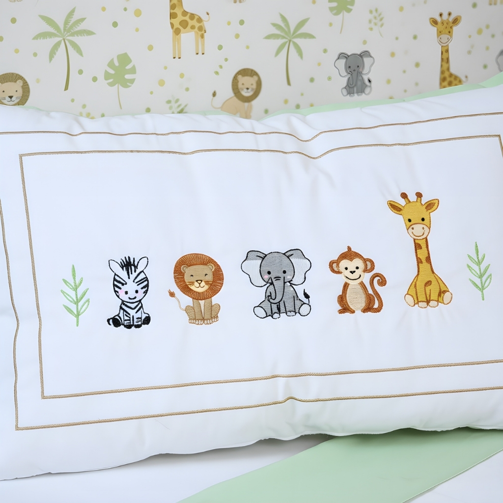Kit Protetor Berço Padrão Americano Bichinhos Safari Verde Caqui Azul Menino Algodão Trança