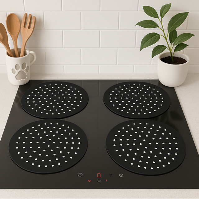 Tapete Forro Protetor para Fogão Indução, Cooktop e Fritadeira Air fryer Feito em 100% em silicone livre de BPA, resistente a temperatura de até 180°C é flexível e muito fácil de lavar e guardar, podendo ser guardado enrolado ou aberto na gaveta. Modelo com furação para circulação do ar, o que evita que grude no cooktop Indução ou na sua AirFryer NOTA IMPORTANTE: PRODUTO COMPATÍVEL APENAS COM FOGÕES/COOKTOPS DE INDUÇÃO, VERIFIQUE SE SEU COOKTOP É DE INDUÇÃO ANTES DE COMPRAR, PARA EVITAR PROBLEMAS FUTUROS. COOKTOPS ELÉTRICOS PODEM DERRETER OU QUEIMAR O ITEM, POIS A FORMA DE AQUECIMENTO É DIFERENTE DO INDUÇÃO. Benefícios: - Pode ser Levada para CookTop Indução, AirFryer, Micro-ondas e Freezer. - Tem um formato que permite circulação do ar quente - Fácil Limpeza - Não Gruda Especificações - Faixa de temperatura suportada: de -40ºC até +180ºC Características - Tamanho Tapete Quadrado: 19 cm x 19 cm - Espessura: 0,1 cm - Cores: Preto, Vermelho - Material: 100% Silicone Resistente a altas temperaturas Garantia do vendedor: 3 meses