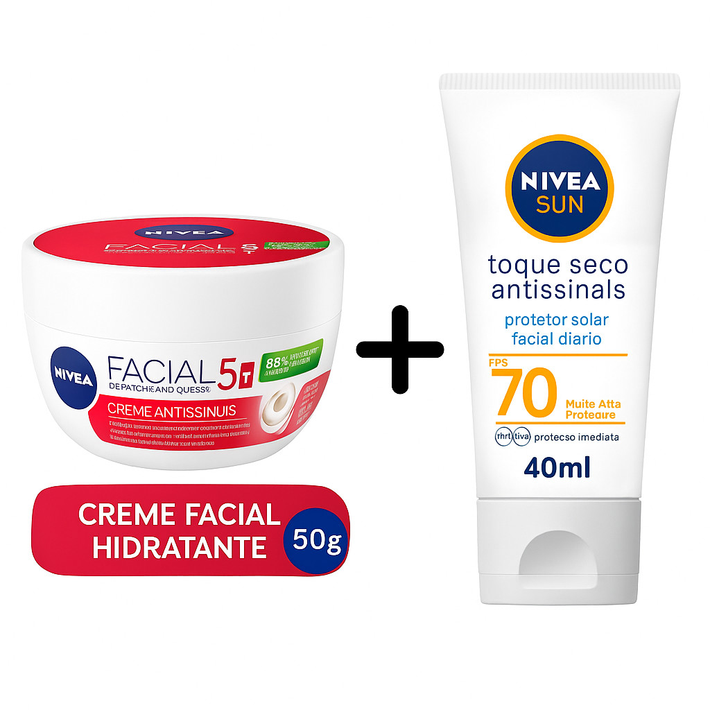 Kit Protetor Solar Facial Toque seco Antissinais FPS70 40ML + NIVEA Creme Facial Antissinais 50G