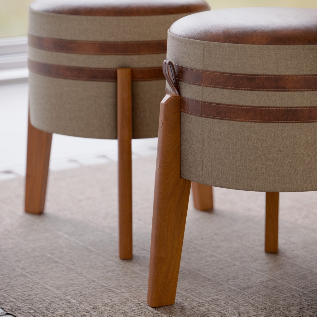 Kit Puff, puf banqueta sala redondo pés em madeira -Luma- CM