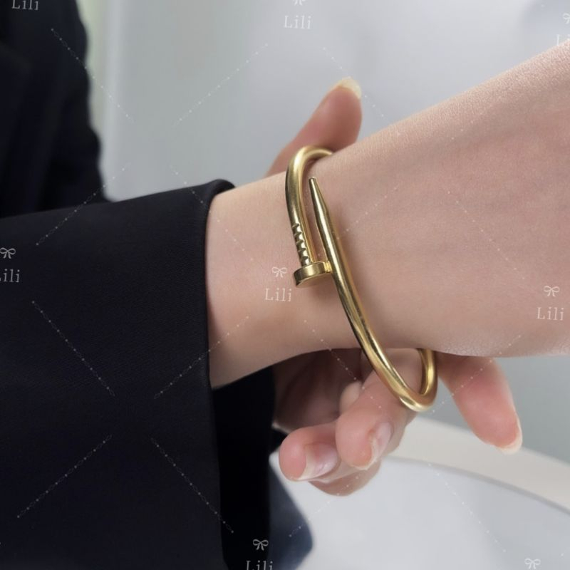 Kit Pulseira Bracelete Prego Prata/Dourado inox