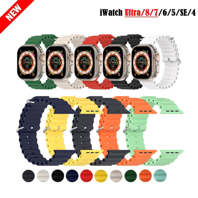 Kit Pulseira de smartwatch De Silicone Ocean Straw Capaz Para Relógio Apple Série 8 Ultra Replacement 42mm 44mm 45mm