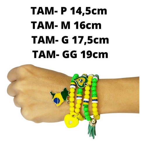 Kit Pulseira Do Brasil Copa Do Mundo Torcedor Miçanga 4 Unid