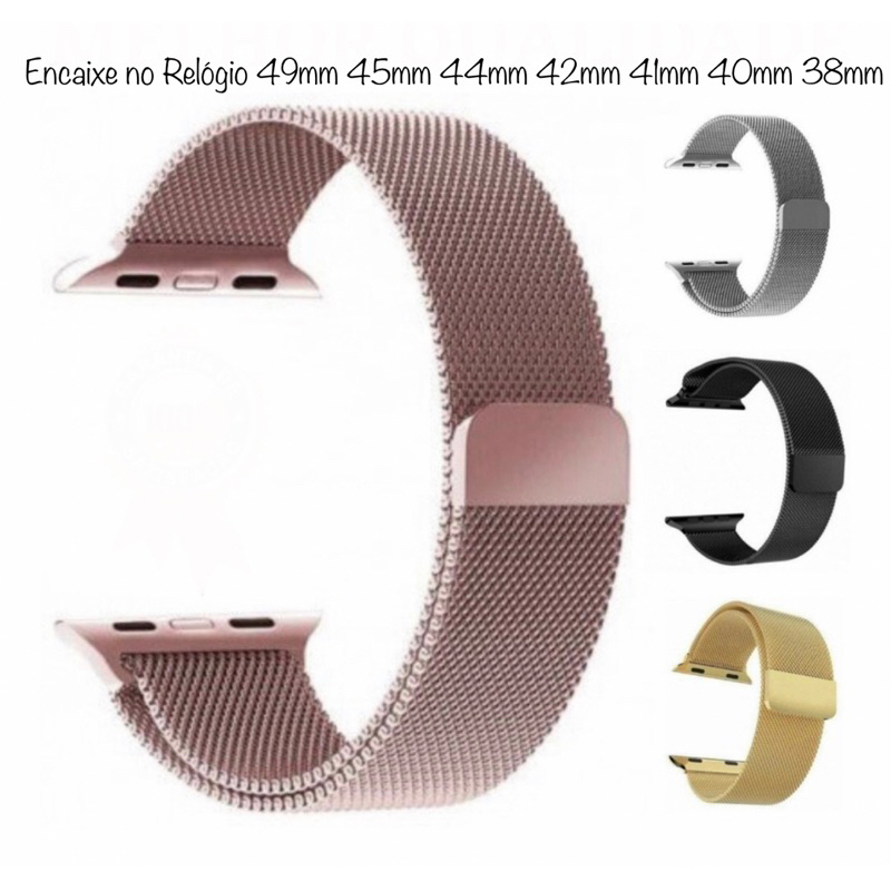 Produto em Estoque — Envio Já Qualquer dúvida nos Chame no Chat, estamos a disposição para lhe auxiliar! Caso deseje comprar mais de uma cor ou tamanho diferente, você precisa clicar em ADICIONAR AO CARRINHO cada um dos itens desejados antes de finalizar a compra para ir no mesmo frete. *** ATENÇÃO ANÚNCIO REFERENTE KIT*** 1 Pulseira Metal 1 CASE DE PROTEÇÃO Relógios SmartWatch Compatíveis: MEDIDA RELÓGIO 38mm 40mm 41mm (MESMO ENCAIXE) 42mm, 44mm, 45mm e 49mm Ultra ( MESMO ENCAIXE) Compatível com os seguintes modelos: IWO 13 , IWO 13lite , IWO 12 ,IWO 12 lite IWO 10 , X7 , W26 , F8 , G500 , AK 76 T500 ,T600,W34,W34s,K8,K9,X6,X8 HW12 , HW16 ,HW26 Watch séries 1, 2, 3, 4, 5,6 e 7 IWO 8,9,10,11,12,16 Iwo Pro W26 / W46 / T500 / T5 / X7 / X8 IWO 8,9,10,11,12,16 IWO Pro, IWO 13, IWO 13lite, IWO 12, IWO 12 lite, IWO 10, X7, W26, F8, G500, AK 76, T500, T600, W34, W34s, K8, K9, X6, X8, HW12, HW16, HW17, HW 67mini, HW22, HW18, HW19, Hw56 PLus, HW57 PRO, W37 Pro, W27, W27 Pro, W28, HW8 Ultra, Max e Watch séries 1, 2, 3, 4, 5, 6, 7 e 8 Ultra - Apple Watch 1/2/3 - 38mm - Apple Watch 1/2/3 - 42mm - Apple Watch 4/5/6/SE - 40mm - Apple Watch 4/5/6/SE - 44mm - Apple Watch 7 - 41mm - Apple Watch 7 - 45mm Apple Watch 8 - 40mm Apple Watch 8 - 41mm Apple Watch 8 - 45mm Apple Watch 8 - 49mm ULTRA Iwo's SmartWatch 38 ao 45mm • Contém: 1 Pulseira METAL ( Escolha o Tamanho) 1 CASE ( Escolha o Tamanho) • Não precisa de adaptador, produto pronto para adicionar ao seu relógio, somente Encaixe. ATENÇÃO: Relógio NÃO INCLUSO, o anúncio trata-se apenas da pulseira. As imagens do anúncio são meramente ilustrativas, as cores pode variar de acordo com a luminosidade da tela, e do Lote do fornecedor. *** Atenção Anúncio referente apenas a 1 unidade de Pulseira e 1 unidade de Case, Não está Incluso o Relógio inteligente, SmartWatch. Este produto não tem vínculos com as empresas fabricantes dos relógios.***