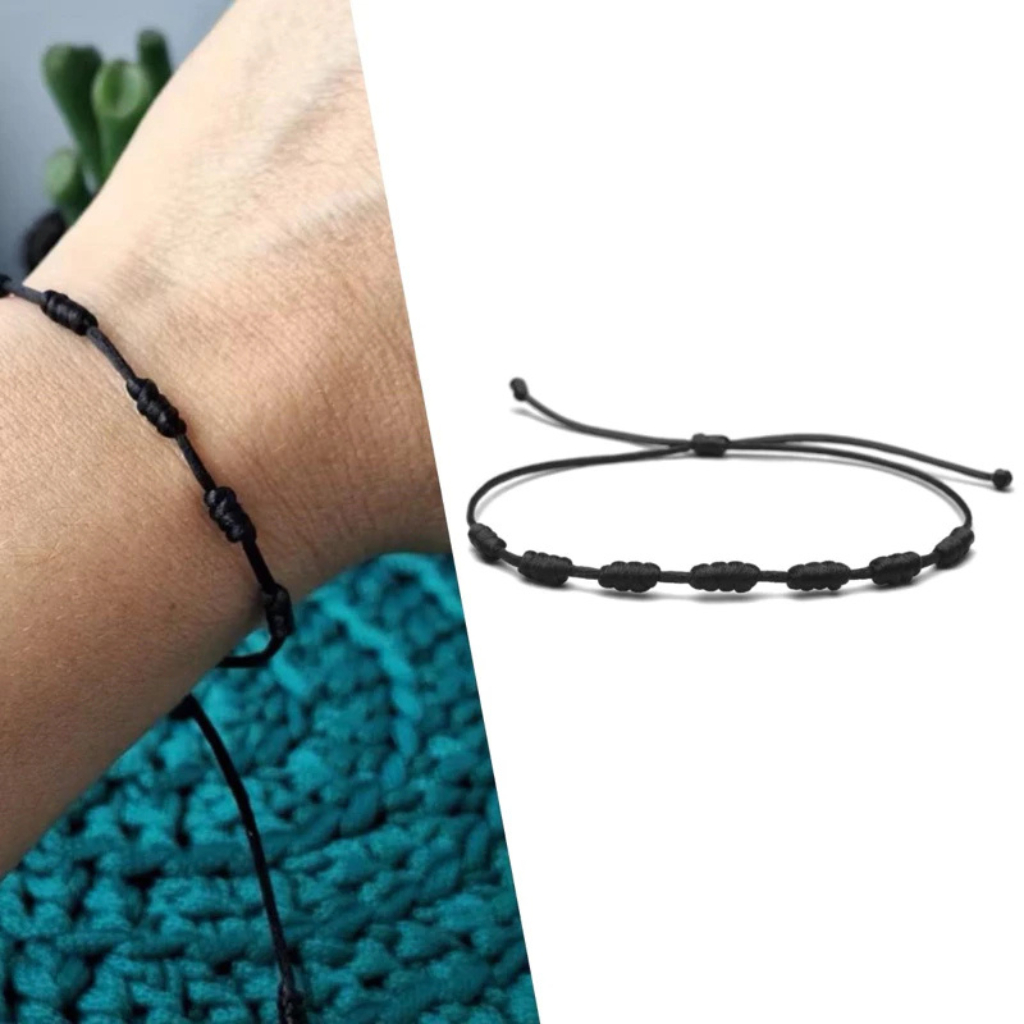 Kit Pulseira Vermelha 7 Nós Adulto de Seda, Combinação 2 Unidades