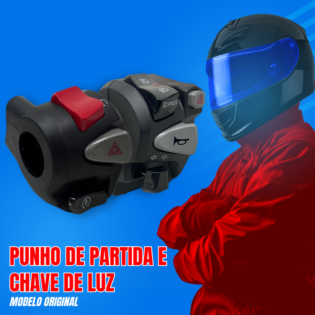 Kit Punho De Partida Cb 500 + Punho Chave de Luz NC750 Com Lampejador Pisca Alerta Cg Titan Fan Cb Start 150 Plug 160