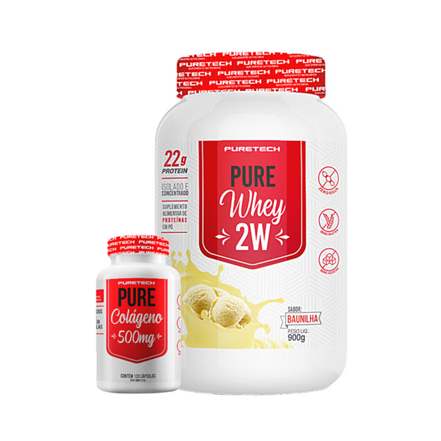 Kit Pure Whey 2W 900g + Pure Colágeno 120 Caps PURETECH
