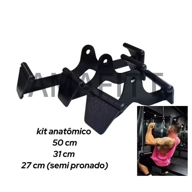 KIT PUXADOR ANATÔMICO 27/31/50 CM REFORÇADOS ACADEMIA MUSCULAÇÃO