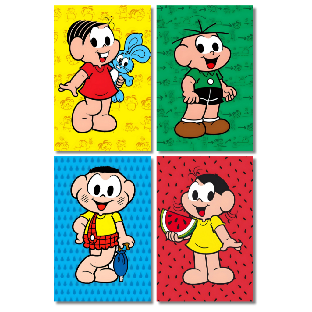 Kit Quadros Decorativos Turma da Mônica 4 Peças Sala Quarto Infantil Criança