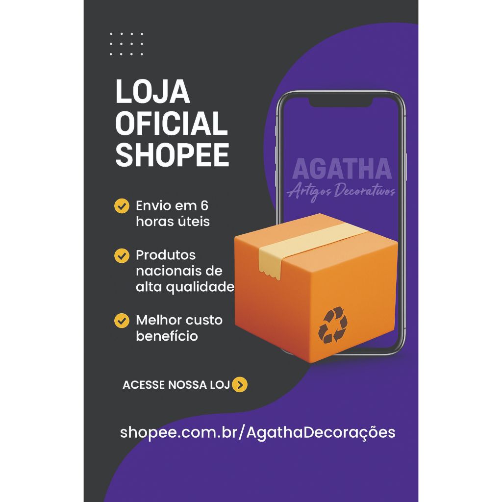 Vendido pela loja AGATHA DECORAÇÕES com avaliação 4.9/5 na Shopee e 7 produtos catalogados aqui no SuperOfertas Brasil. Esta loja ocupa a 48.156ª colocação no ranking de lojas por volume total de vendas registradas (entre 138.313 lojas).