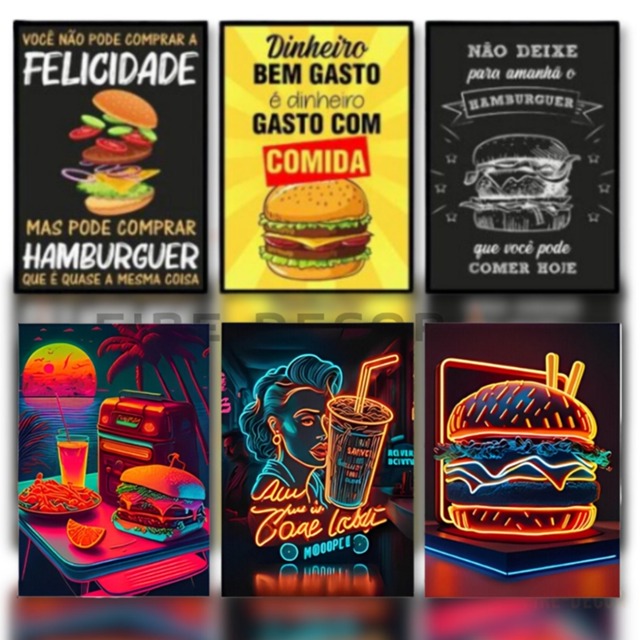 | Kit Quadros Para Lanchonete Hambúrguer Frase 4K Decoração Lanche 3 ... este produto | R$ 24,95 | 22% | 5.0/5 | — |