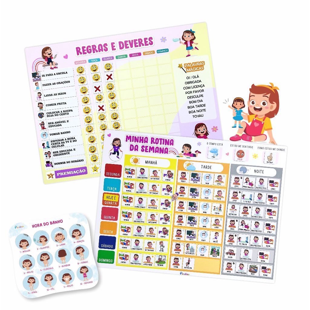 Kit Quadros Regras Incentivo e Rotina Semanal para crianças