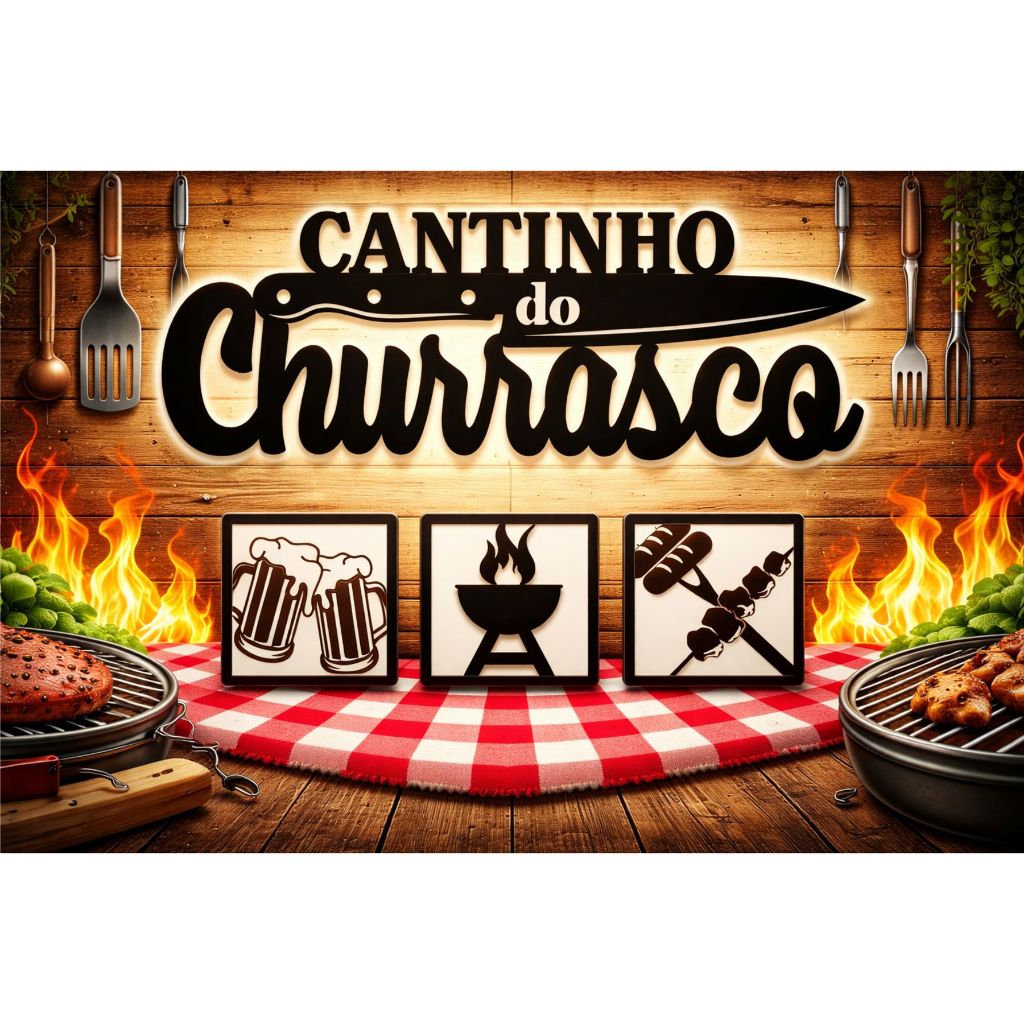 kit quadros vazados mdf cantinho do churrasco para decoração