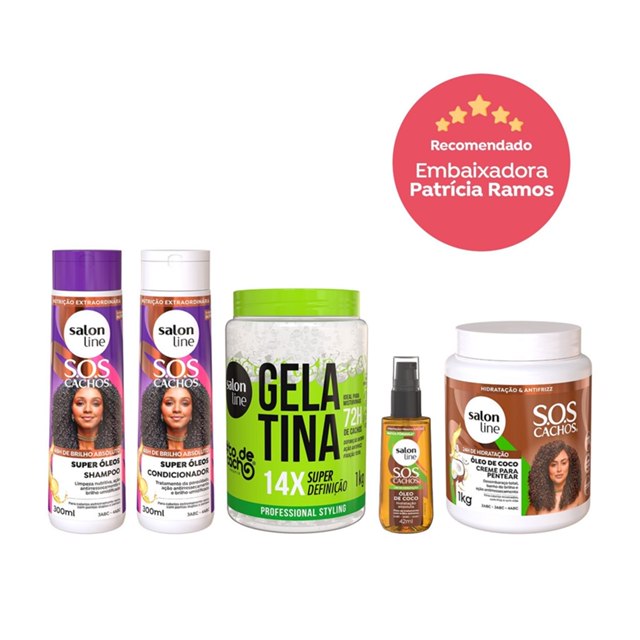 O Kit Queridinhos da Embaixadora conta com 1 Gelatina #todecacho Super Definição, 1 Shampoo e 1 Condicionador SOS Cachos Super Óleos, 1 Creme para Pentear SOS Cachos Coco Tratamento Profundo e 1 Óleo SOS Cachos Óleo de Coco. Juntos oferecem uma definição incrível, hidratação profunda e nutrição poderosa. <>INDICAÇÕES$& Para quais tipos de cabelo? Cabelos cacheados e crespos. Qual a indicação? Cabelos ressecados, quebradiços e com frizz. Pode usar a partir de quantos anos? A partir de 12 anos. <>ATIVOS$& Quais os principais ativos? Shampoo SOS Cachos Super Óleos e Condicionador SOS Cachos Super Óleos Super óleos: a união de 12 óleos, entre eles os óleos de Coco, Argan, Karité, Macadâmia, Oliva, além de outras sementes, ervas e frutos, atua nas camadas mais profundas das fibras capilares, repondo seus nutrientes essenciais, garantindo brilho e trazendo vitalidade ao cabelo. Gelatina #todecacho Super Definição Babosa: promove hidratação e nutrição dos fios. Além disso, ajuda no tratamento da caspa, no fortalecimento capilar, no crescimento capilar, e na maciez dos fios. D-pantenol: garante hidratação, maciez e brilho. Além disso, aliados à tecnologia PROFIX, proporcionam definição intensa, combate ao frizz e fixação duradoura. Creme para Pentear SOS Cachos Coco e Óleo SOS Cachos Óleo de Coco Os itens contam com manteiga e óleo de coco. <>MODO DE USO$& Qual a melhor forma de usar? Shampoo SOS Cachos Super Óleos Aplique o Shampoo uniformemente no cabelo molhado. Massageie suavemente até formar espuma. Enxágue. Condicionador SOS Cachos Super Óleos Após usar o Shampoo, aplique o Condicionador uniformemente no cabelo molhado. Massageie e deixe agir de 1 a 3 minutos. Enxágue. Gelatina #todecacho Super Definição e Creme para Pentear Com os cabelos limpos e úmidos, aplique o produto mecha a mecha, uniformemente, no comprimento e pontas. Desembarace os fios com um pente de dentes largos e, em seguida, amasse-os iniciando o movimento das pontas até a raiz. Repita o movimento quantas vezes forem necessárias. A aplicação ideal dependerá da quantidade e do comprimento dos fios. Não enxágue. Óleo SOS Cachos Óleo de Coco Com o cabelo seco ou úmido, aplique algumas gotas do Óleo de Tratamento S.O.S Cachos na palma das mãos e espalhe bem do comprimento às pontas dos fios. Finalize como preferir. Sem enxágue. <>CARACTERÍSTICAS$& É produto vegano? Os produtos são veganos. É liberado? Apenas a gelatina é liberado.
