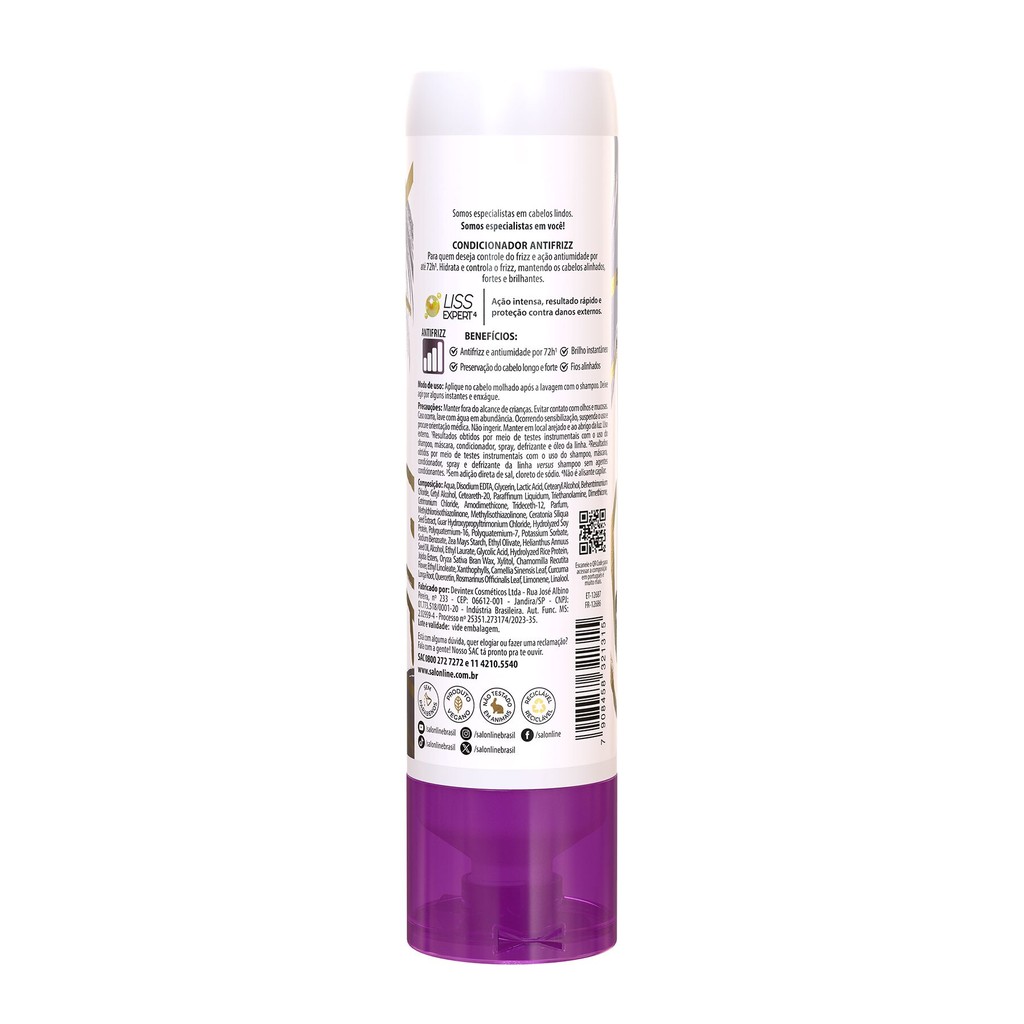 O Kit queridinho da embaixadora conta com 1 Shampoo e 1 Condicionador Meu Liso Antifrizz, 1 Óleo de Tratamento Multifuncional e 1 Rímel Alinhador Meu Liso Demais e 1 Spray Defrizante Protetor Térmico Meu Liso Muito + Liso. Juntos fornecem para os cabelos lisos alinhamento, hidratação, nutrição e efeito antifrizz. <>INDICAÇÕES$& Para quais tipos de cabelo? Para cabelos ondulados e lisos. Qual a indicação? Cabelos ressecados, quebradiços e com frizz. Pode usar a partir de quantos anos? A partir de 12 anos. <>ATIVOS$& Quais os principais ativos? Todos os itens contam com a tecnologia Liss Expert que garante ação intensa, resultado rápido e proteção contra danos externos. <>MODO DE USO$& Qual a melhor forma de usar? Shampoo Meu Liso Antifrizz Aplique no cabelo molhado, massageie suavemente e enxágue. Condicionador Meu Liso Antifrizz Aplique no cabelo molhado após a lavagem com o shampoo. Deixe agir por alguns instantes e enxágue. Óleo de Tratamento Multifuncional Meu Liso Demais Finalizador: aplique algumas gotas na palma da mão e espalhe bem no cabelo seco ou úmido, do comprimento às pontas. Protetor térmico: aplique conforme orientações acima e siga com o uso da ferramenta de calor desejada. Misturinha: após lavar o shampoo, misture algumas gotas do óleo na máscara, aplique o comprimento às pontas, aguarde 3 minutos e enxágue. Umectação: aplique produto no cabelo mecha a mecha e deixe agir por, no mínimo, 30 minutos. Rímel Alinhador Antifrizz Meu Liso Demais Ao aplicar o produto nos cabelos secos, utilize até 5 aplicações, distribuindo-o uniformemente com o auxílio de um pincel nos fios arrepiados. A quantidade a ser utilizada pode variar de acordo com comprimento e o volume do cabelo. Produto sem enxágue. Spray Defrizante Protetor Térmico Aplique em todo o comprimento do cabelo úmido ou seco, mecha a mecha. Deixe secar naturalmente ou inicie o processo de escovar com um secador e, se desejar, finalize com a prancha. <>CARACTERÍSTICAS$& É produto vegano? Os produtos são veganos. É liberado? Apenas o spray é liberado.