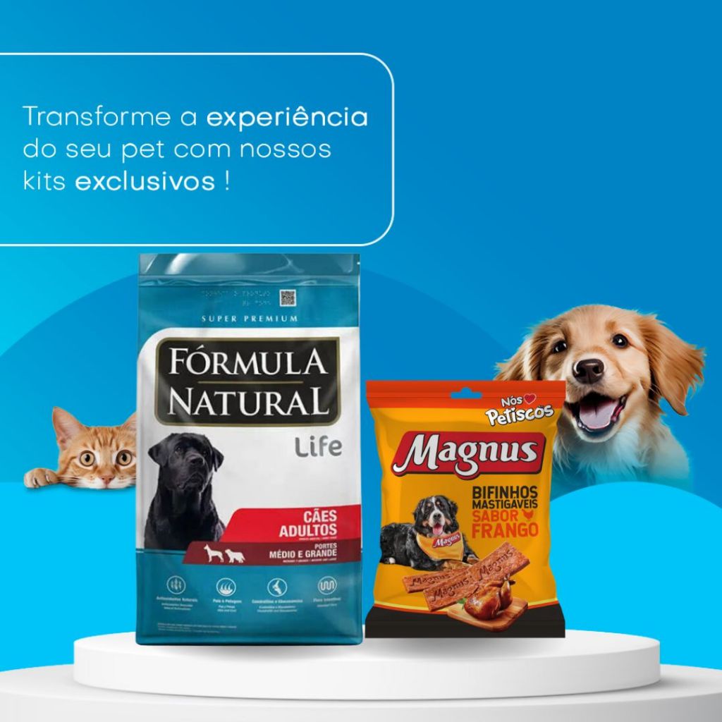 Kit Ração Fórmula Natural Life Cães Adultos Médio Grande 15kg + Magnus Bifinhos Frango 500g