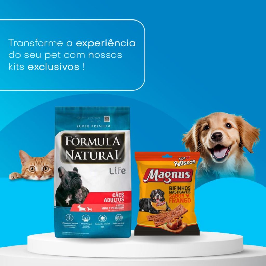 Kit Ração Fórmula Natural Life Cães Adultos Mini Pequeno 15kg + Magnus Bifinhos Frango 500g